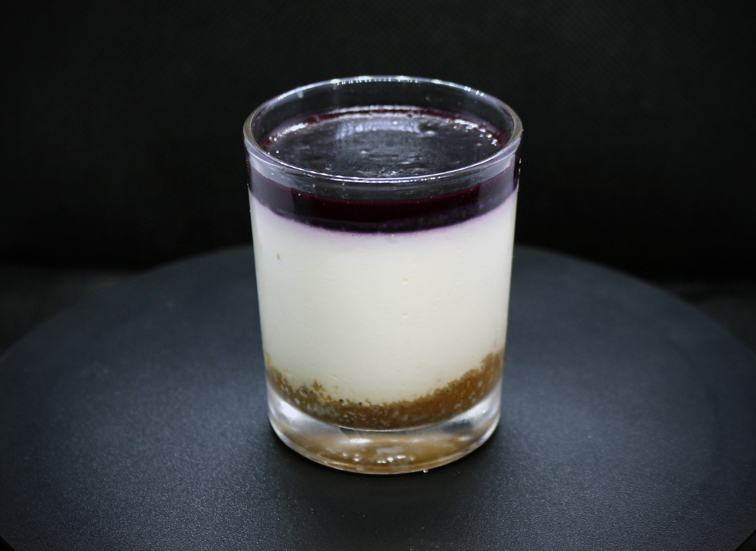 Suave y cremosa, coronada con deliciosa mermelada de arándanos dulces y ligeramente ácidos, sobre una base crujiente.